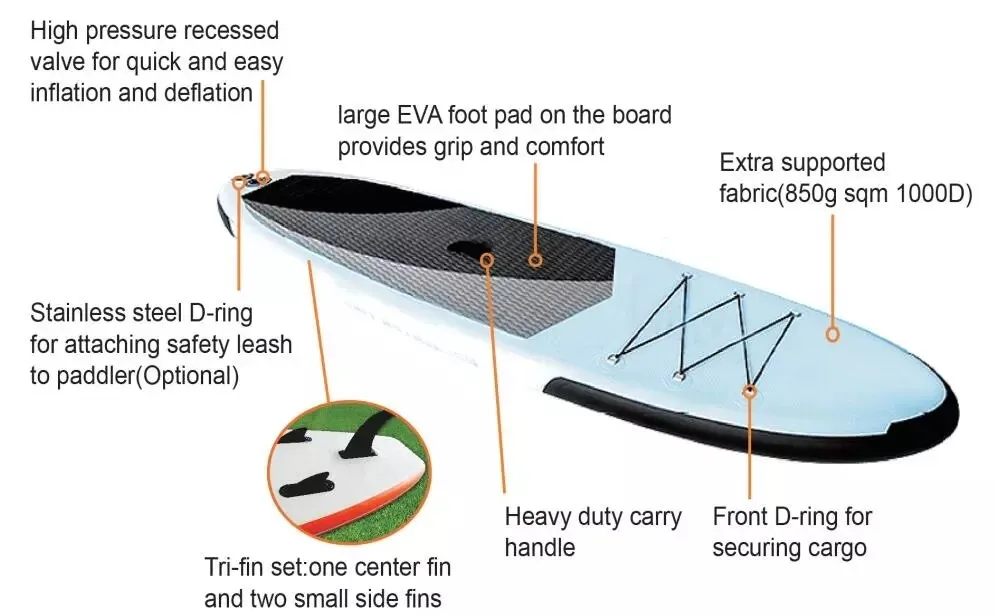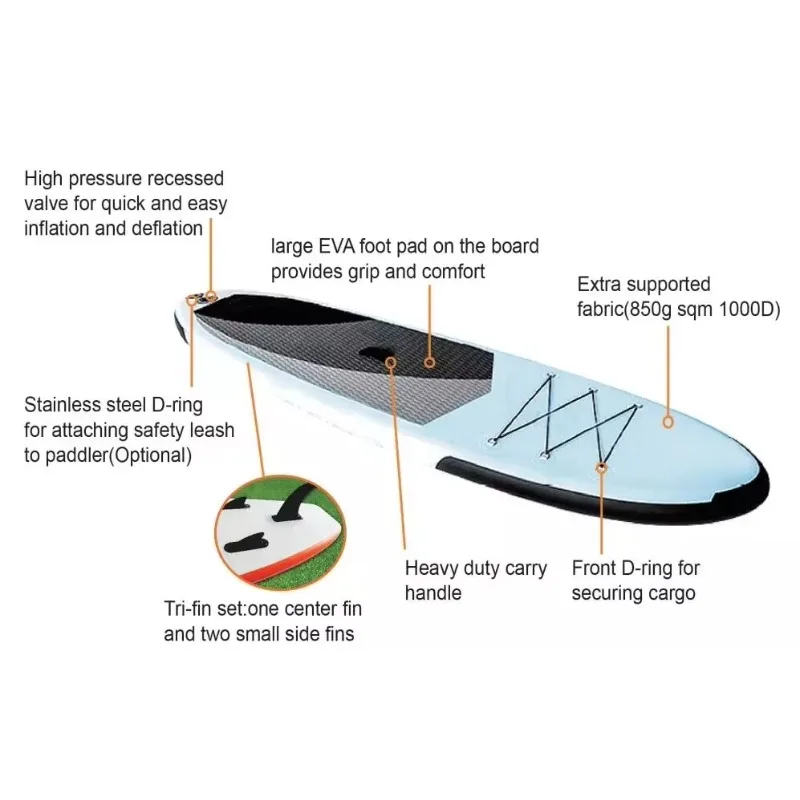 Enjoy stability and performance on the water with this Reinforced Double-Layer Inflatable SUP Board. Built for durability, balance, and all-around use, it’s ideal for beginners and experienced paddlers. Perfect for surfing, touring, fishing, and fitness, this board offers a strong, portable, and easy-to-use design for all water adventures.